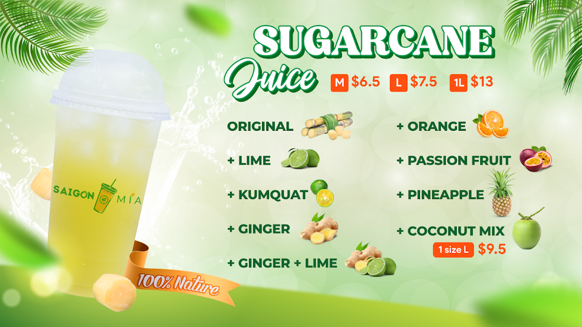 Whether you're craving a revitalizing sugarcane with lime or a tropical fruit medley, Sai Gon- Mia offers consistently hygienic, flavorful drinks that embody fresh, natural goodness—with every sip leaving a memorable impression.